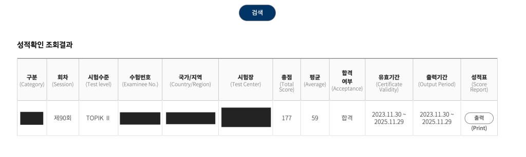 ・TOPIK公式サイトのマイページでは結果は確認できません。