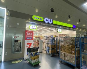 搭乗開始まで1時間ほどあったので空港内を散策してみました。免税店のほか、韓国のコンビニ「CU」もあったので、最後にここでお土産を探してみるとよいですね。