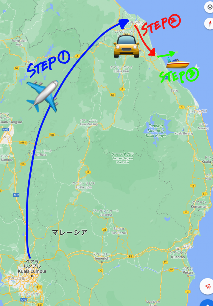 まず、飛行機でクアラルンプールからコタバル空港に向かいます。