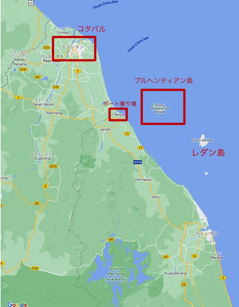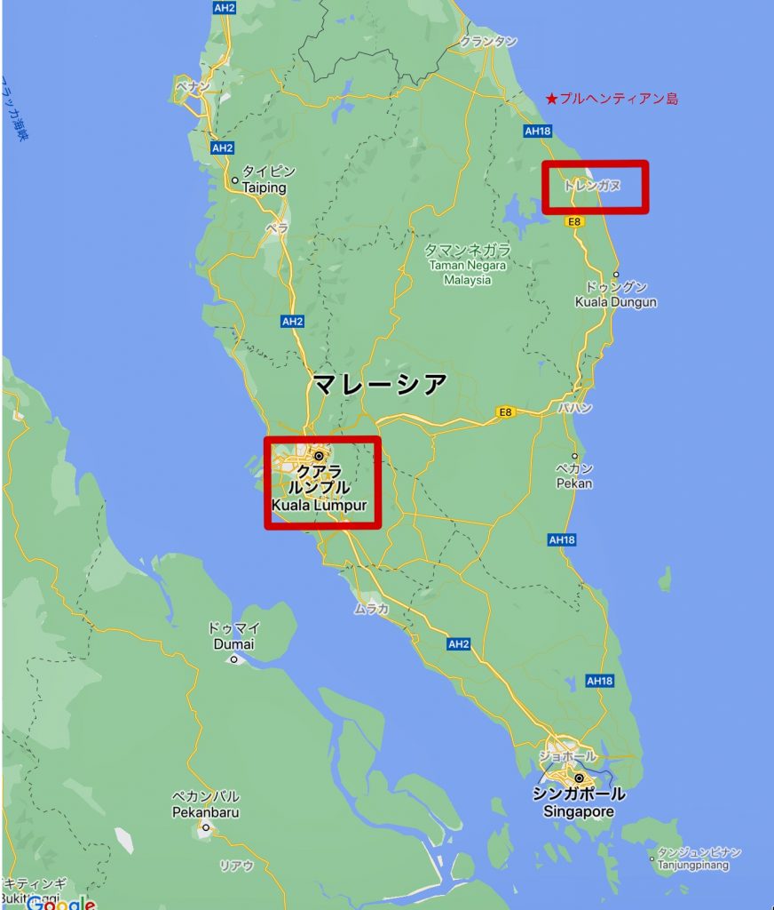 ペルヘンティアン島があるのはマレー半島東海岸のトレンガヌ州の北部。
