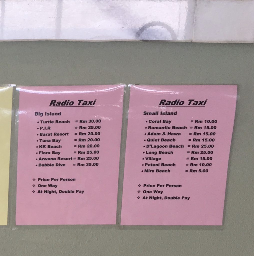 ボートタクシーの料金はスモールアイランド内だと片道RM5~35、移動時間は長くて20分ほどです。