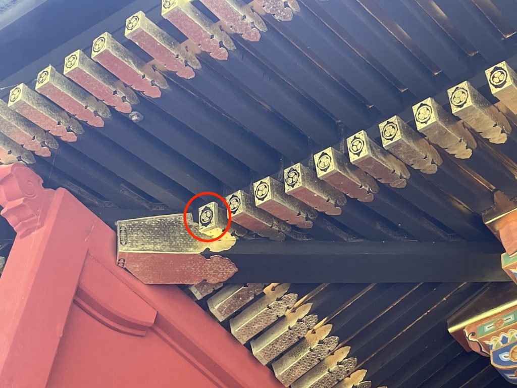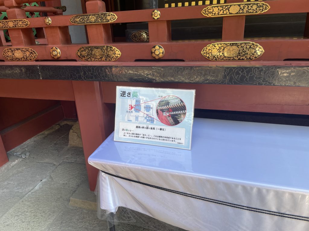 社殿の一部に、わざと不完全になるように作られた「逆さ葵」は見どころの一つ。